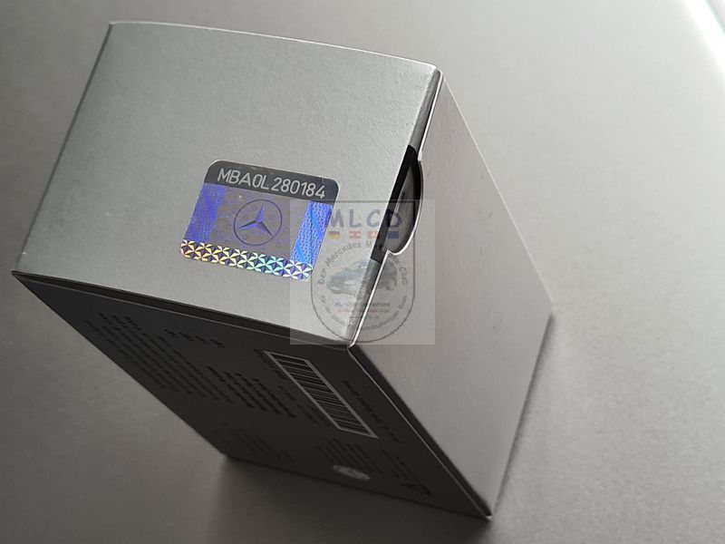 In Kunststoff-Klarsicht-Vitrine mit silbernem Design-Umkarton mit Klarsichtfenster, Hologramm und Mercedesstern
