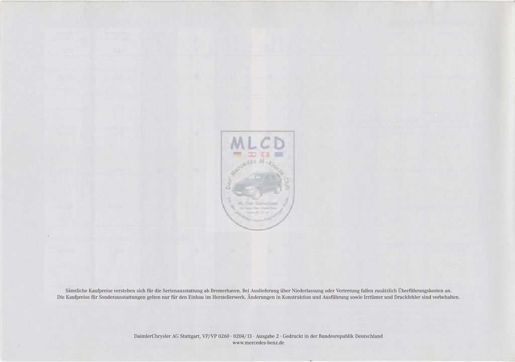 Mercedes-Benz W163 Preise für die M-Klasse 2004 02 Februar
